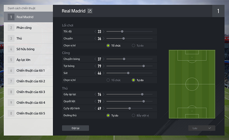Tại mục team hình, ngài hoàn toàn có thể tuỳ ý kiểm soát và điều chỉnh sơ đồ gia dụng, rưa rứa cầu thủ tranh tài theo đuổi ý bản thân.